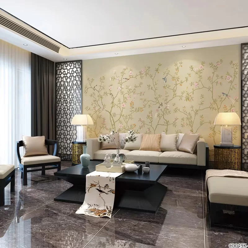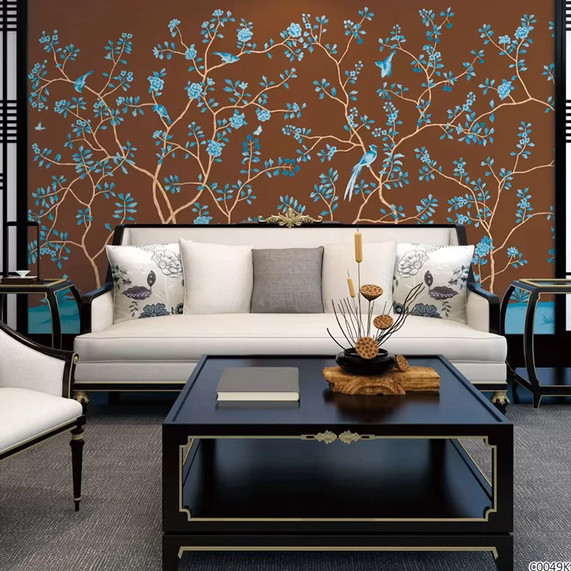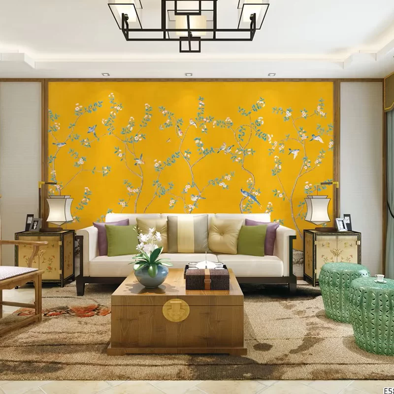 Style 3D Waterproof Luxury Modern Chinese Style Silk Wallpaper, Hand-painted Chinese Painting Style Floral and Bird Wallpaper Mural