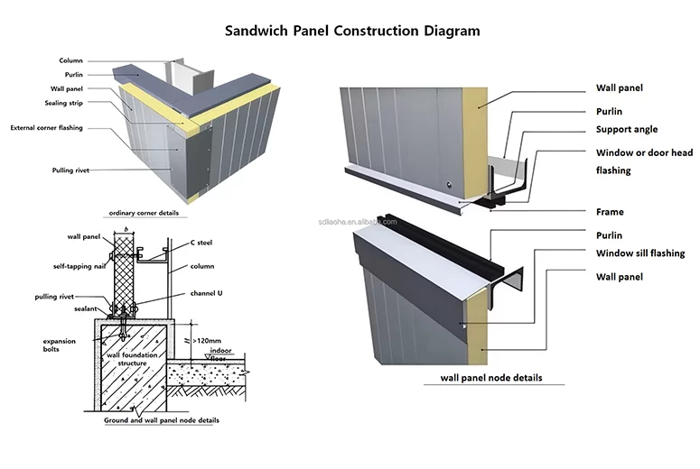 - Material: Steel, Rock Wool, PIR (Polyisocyanurate), PU (Polyurethane), EPS (Expanded Polystyrene)